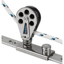 Delrin™ sheave ensures smooth operation and high safe working load. Stainless Steel cheeks and stainless steel slider ensure reliability. Polyethylene liner and pin stop allow for easy adjustment.